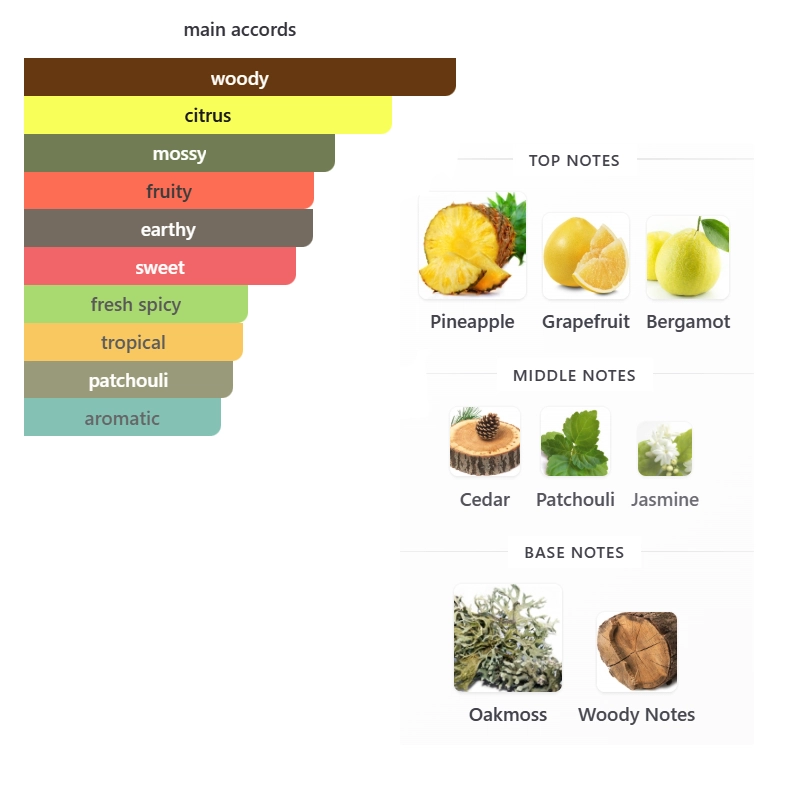 Top notes are Pineapple, Grapefruit and Bergamot;