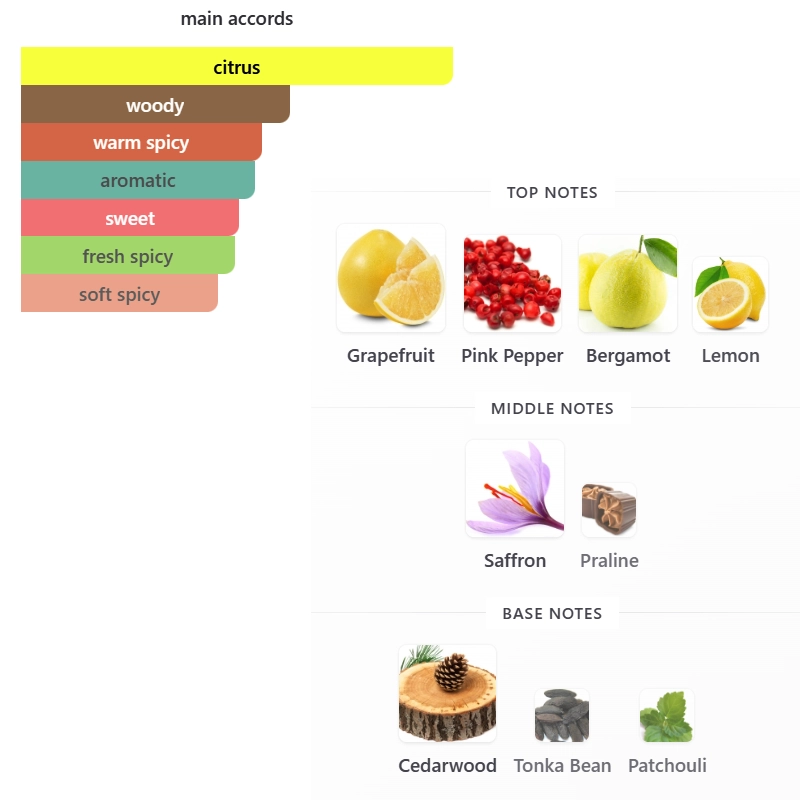 Middle notes are Saffron and Praline;